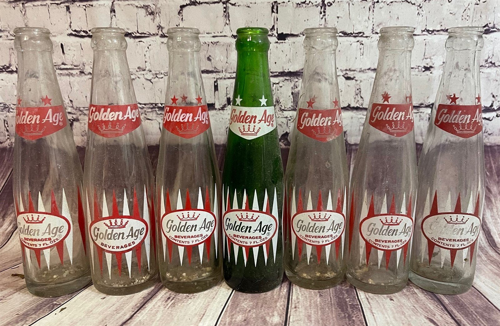 Seven Vintage Advertising Glass Golden Age Mid Century Collectible Bottles