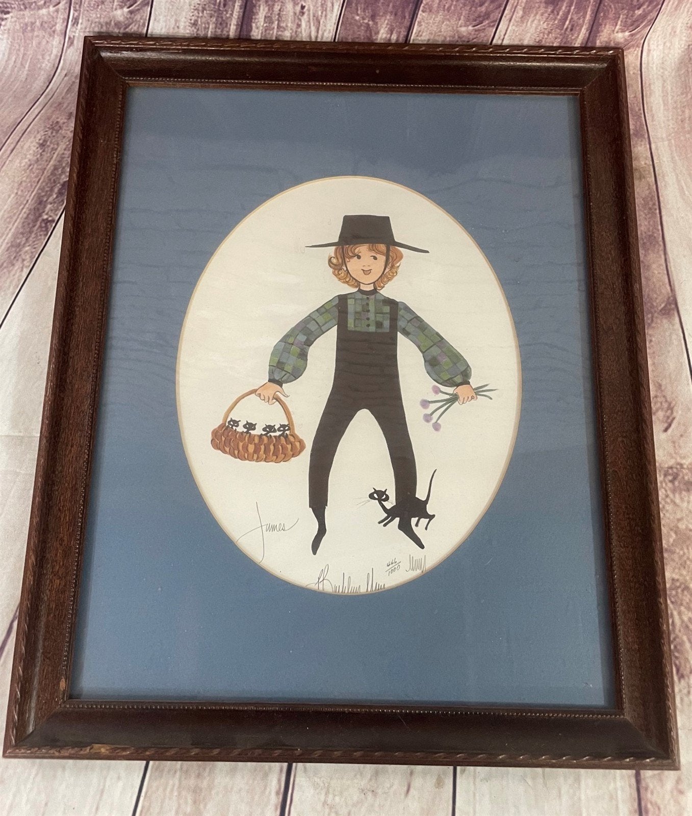 Limited Edition P Buckley Moss Signed Numbered Art Print Amish Boy Kittens