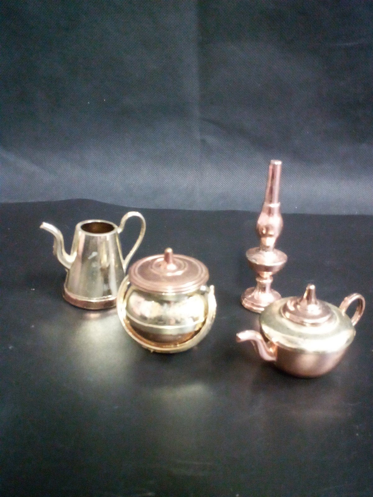 Brass 4pc Miniature Set With Teapot Kettles And Finial Collectible
