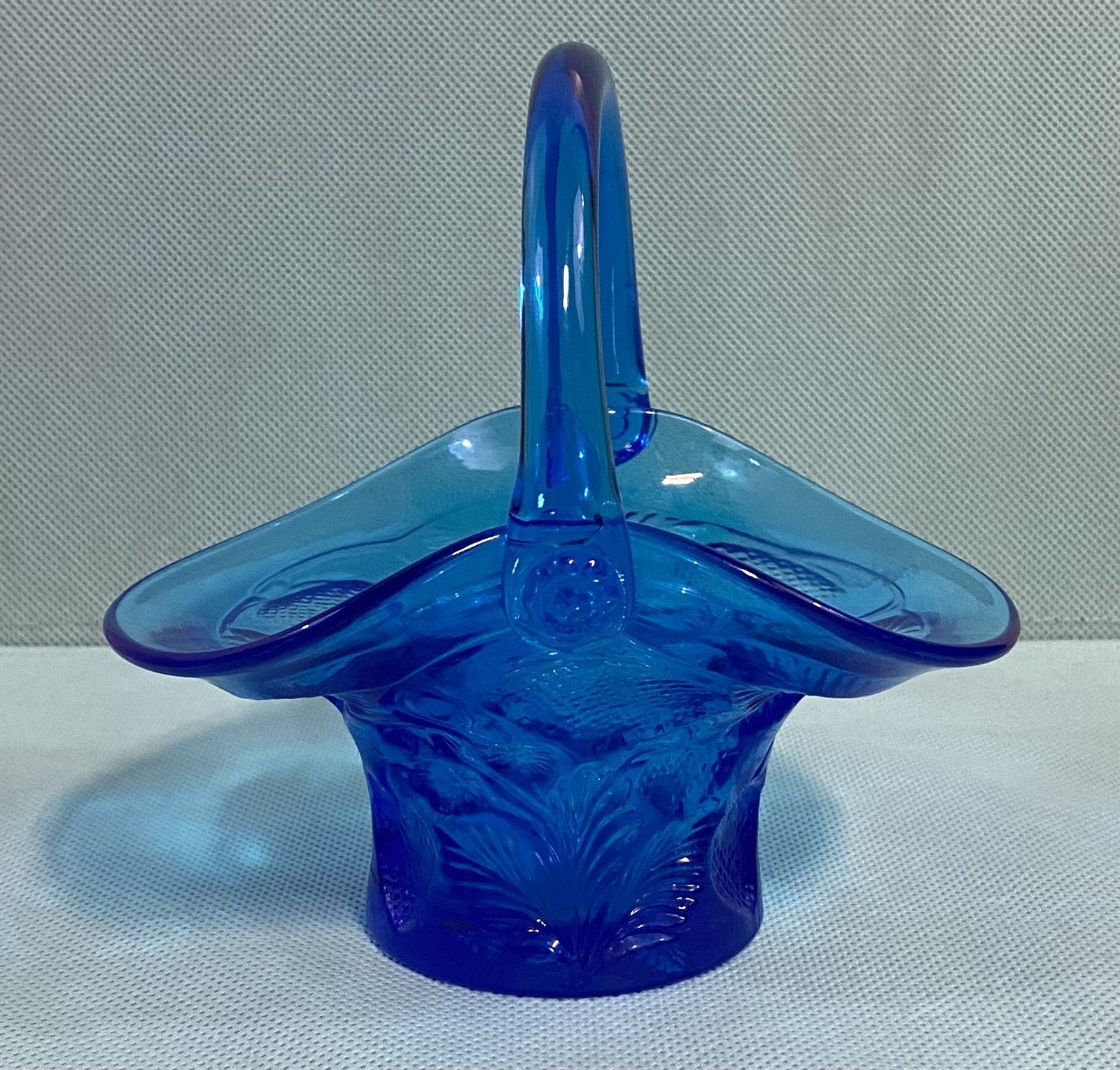 RARE Vintage Royal Blue Cambridge Glass Inverted Strawberries Art Glass Basket