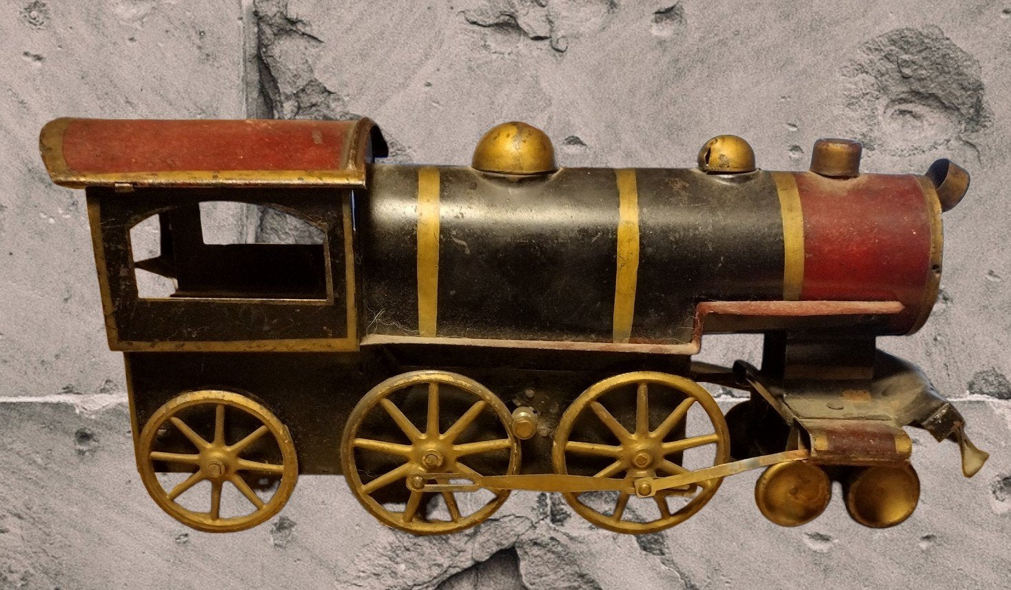 Antique 1890's Dayton Tin Hill Climber Friction Trolley / Locomotive Train Toy