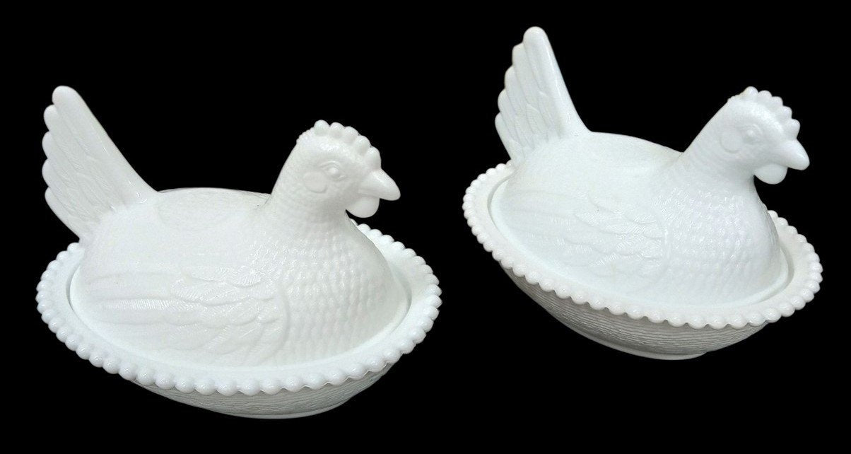 Indiana Or Mosser Milk Glass Hen Candy Dishes Kitchenware Vintage Collectible