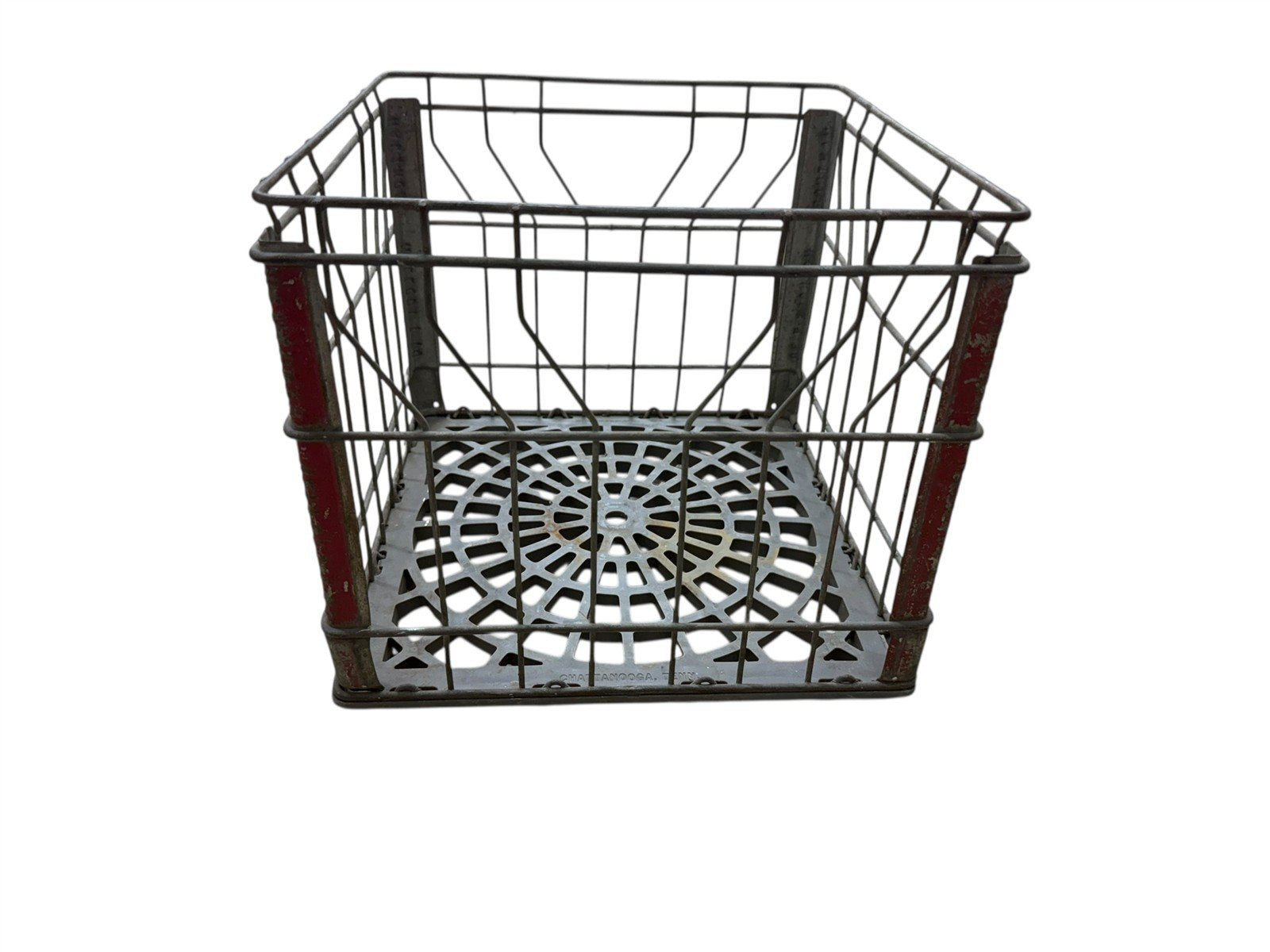 Hawthorne Mellody Dairy Milk Bottle Crate Metal Wire Vintage Farm Decor Antique
