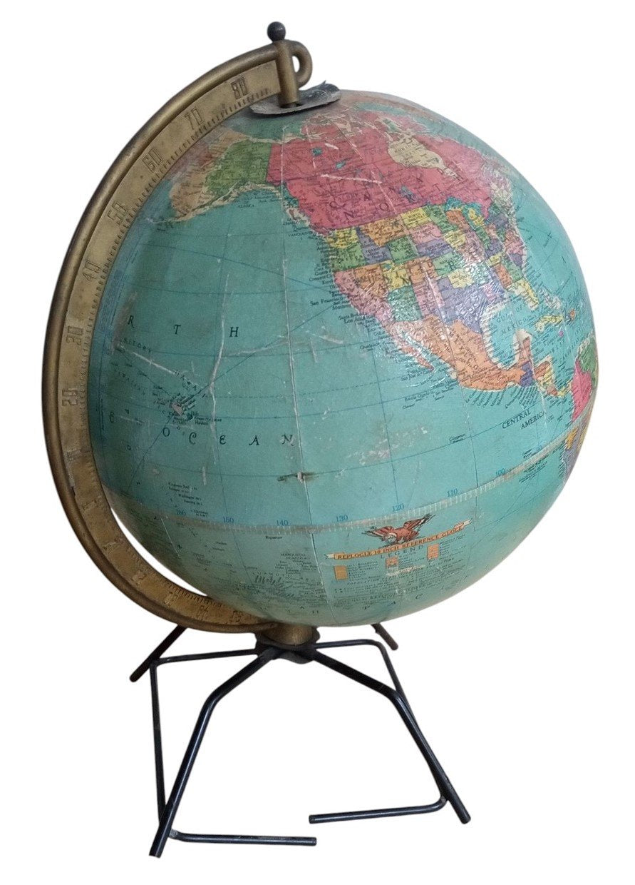 Blue Globe Of Earth Vintage Collectible Nostalgic Historical Geography 1960s