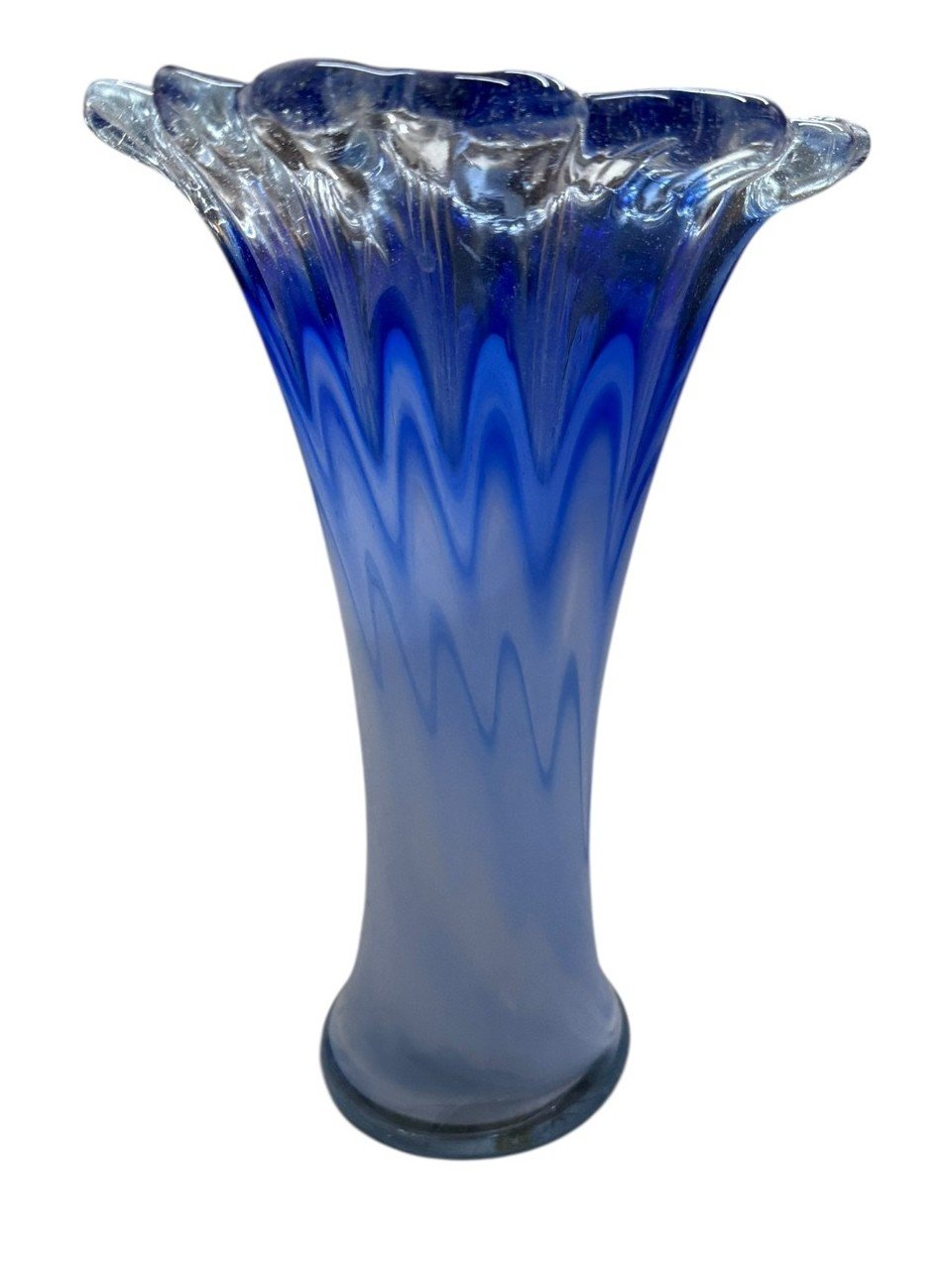 Blue And White Large Art Glass Vase Home Decor Vintage Collectable Nostalgic