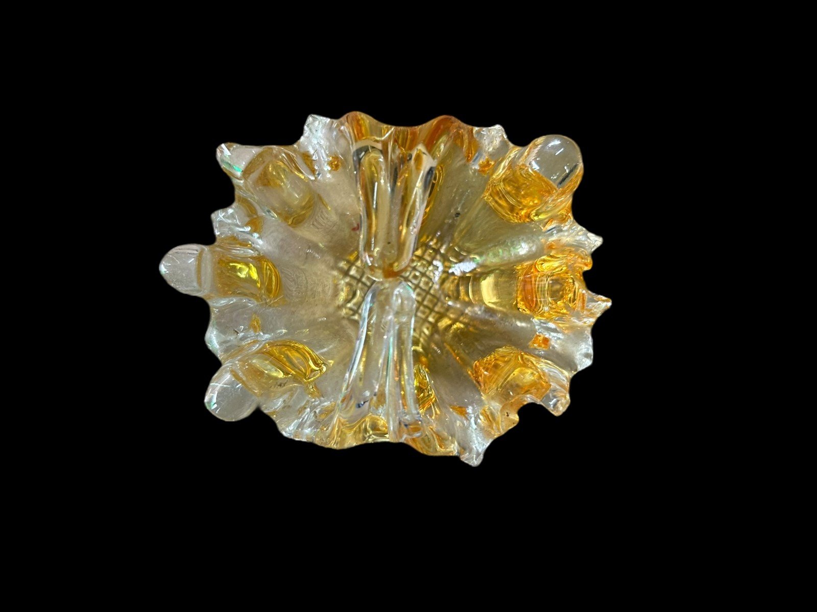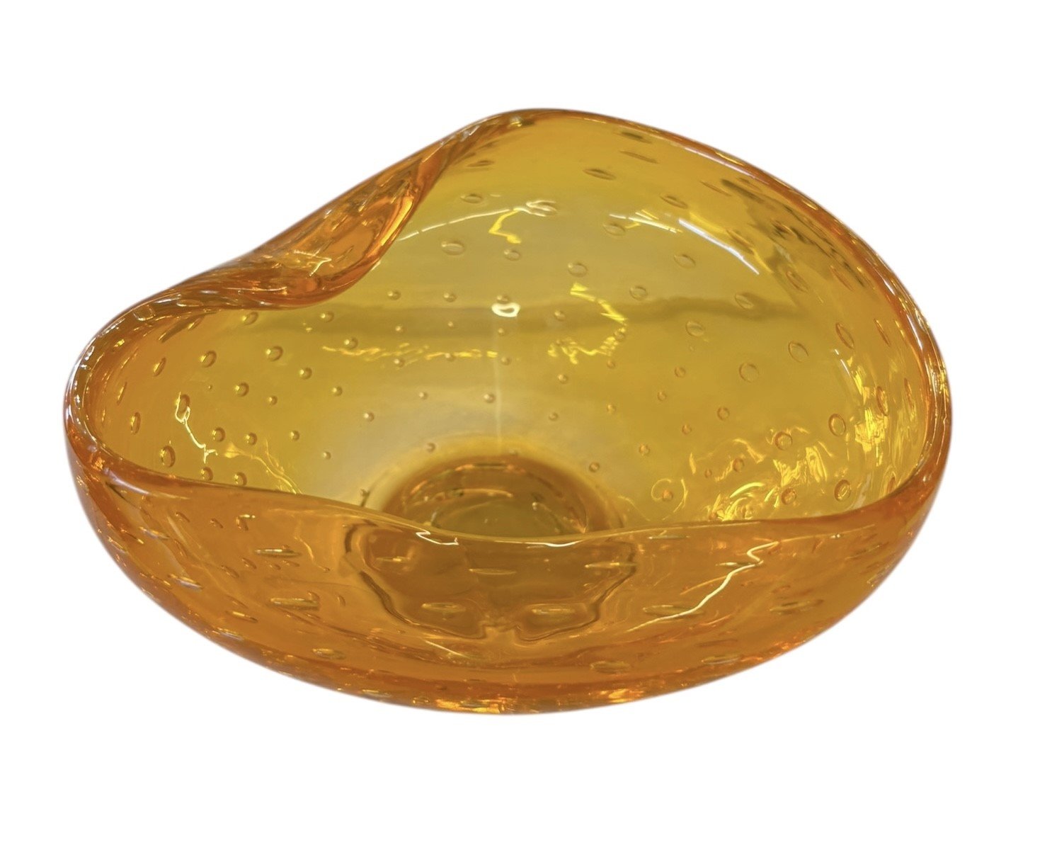 Amber Orange Blown Glass Bowl Vintage Controlled Bubble Folded Edge