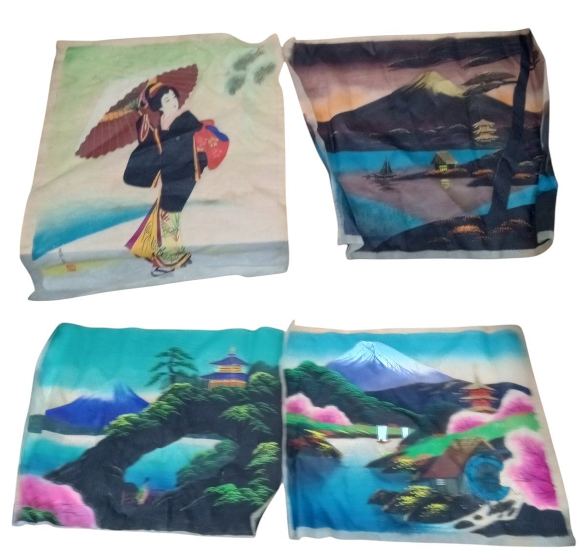 Japanese Vintage Silk Scarves Set Of 4 Antique Collectible Nostalgic Decorative