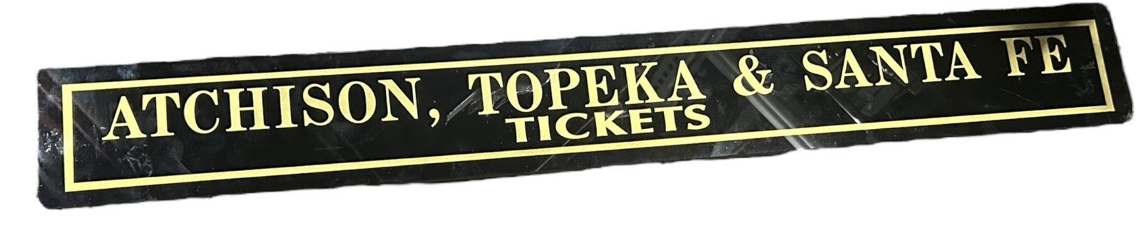Atchison Topeka & Santa Fe Tickets Antique Jalousie Glass Sign