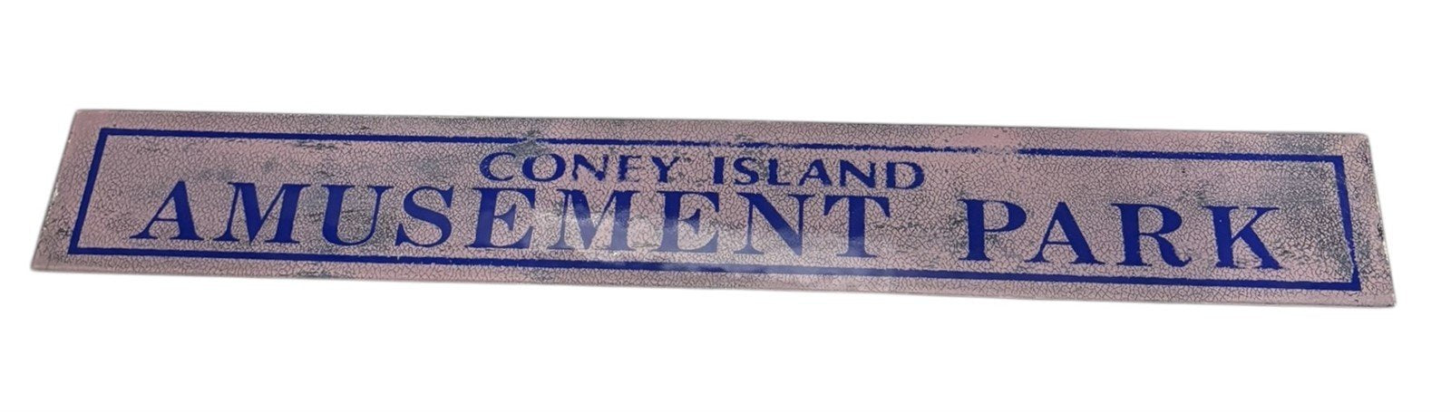 Coney Island Amusement Park Pink Antique Jalousie Glass Sign