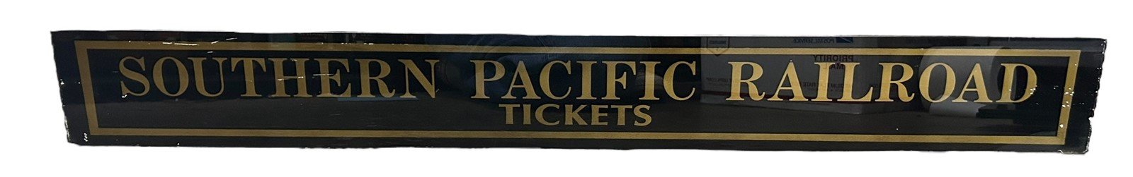 Southern Pacific Railroad Tickets Antique Jalousie Glass Sign