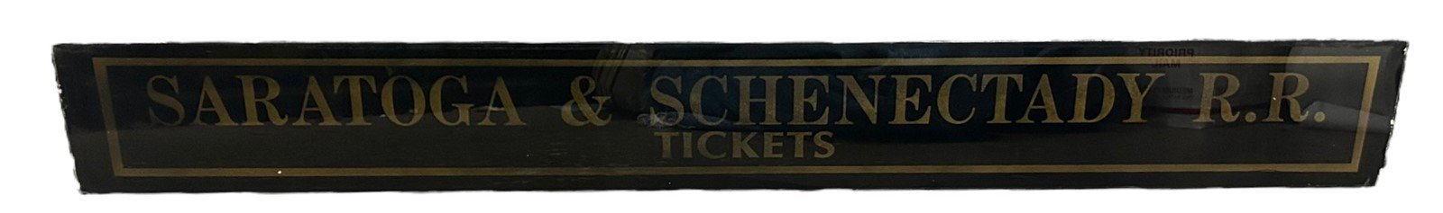 Saratoga & Schenectady RR Tickets Antique Jalousie Glass Sign