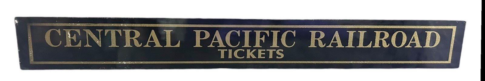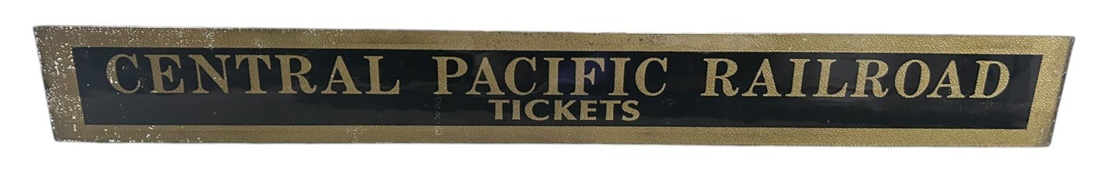 Central Pacific Railroad Tickets Thick Border Antique Jalousie Glass Sign