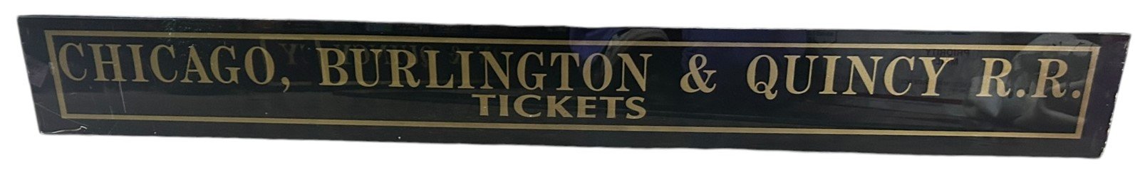 Chicago Burlington & Quincy RR Tickets Antique Jalousie Glass Sign