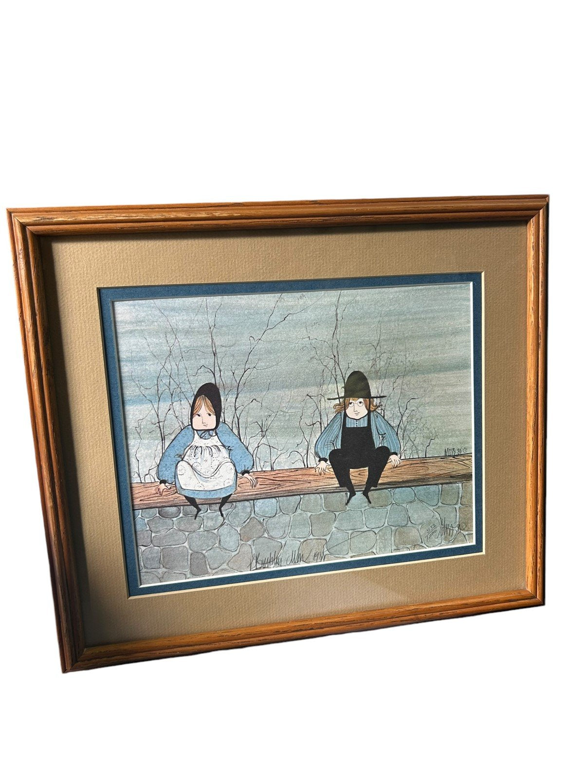 P. Buckley Moss Signed Print Stack of Amish Girls 921/1000 Vintage Collectible