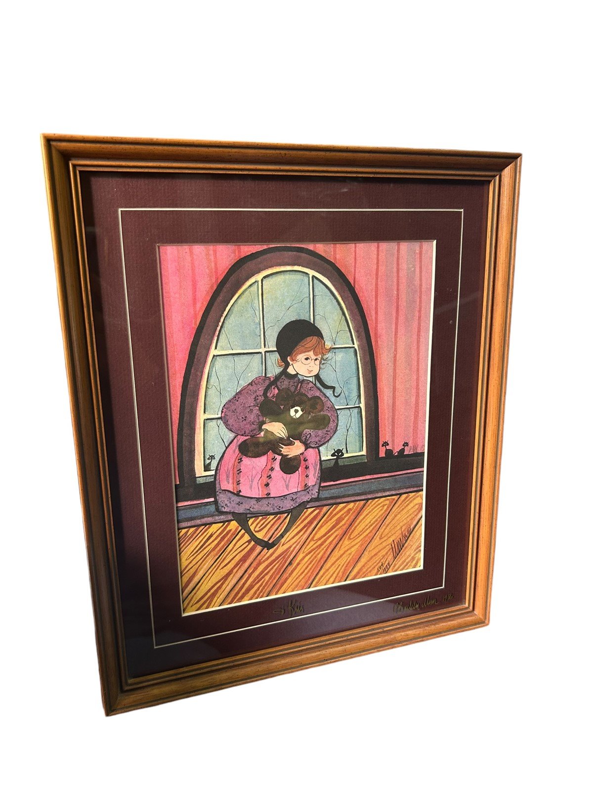 P. Buckley Moss Double Signed Print of an Amish Girl With a Teddy Bear 504/1000
