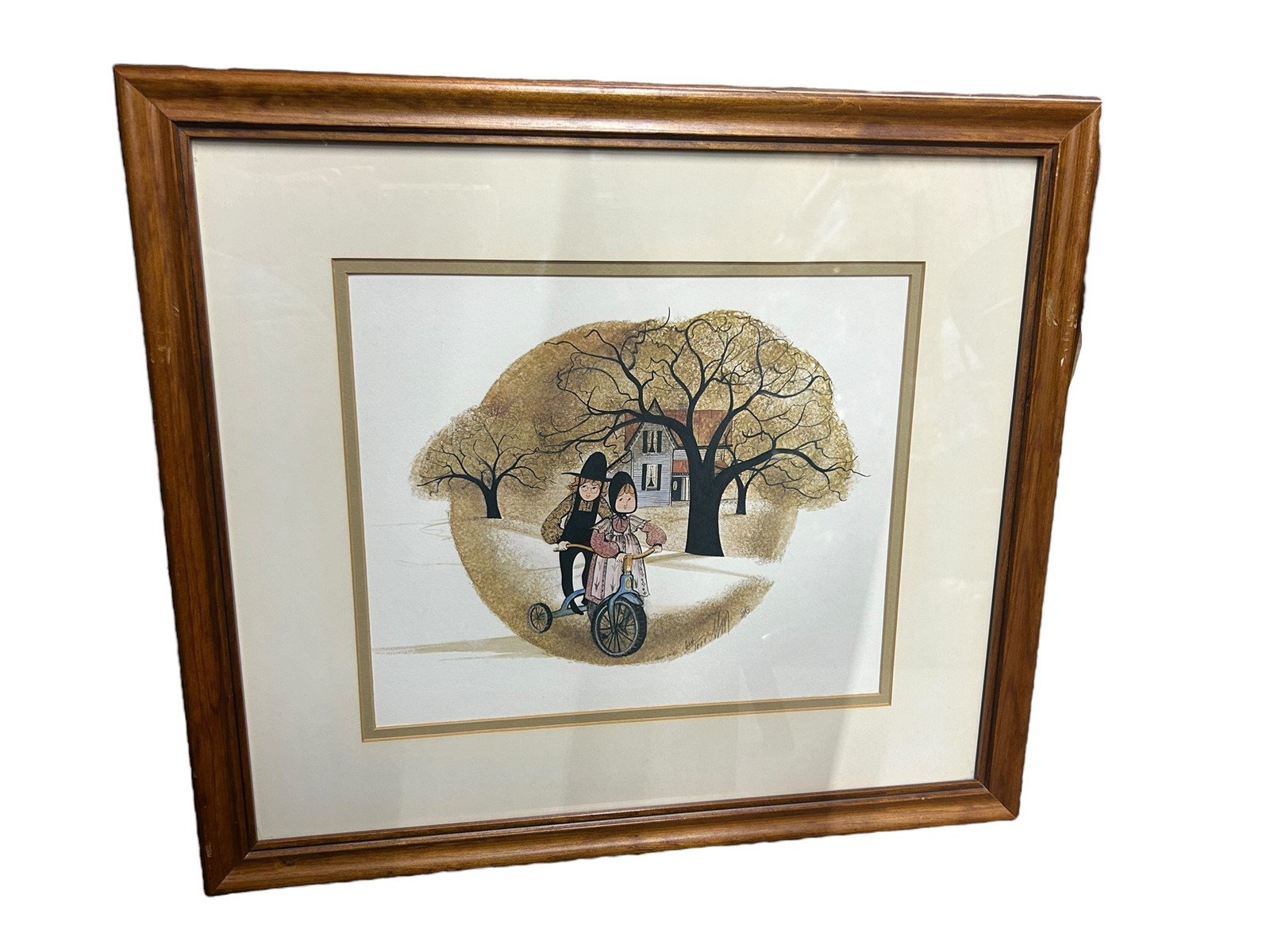 P. Buckley Moss Signed Print Two Amish Kids on a Tricycle 614/1000