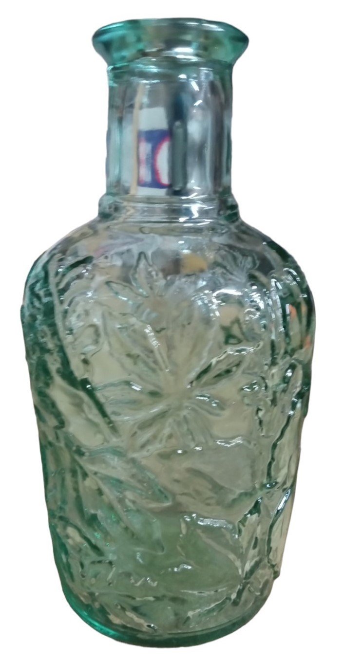 Maple Leaf Glass Green Decanter Vintage Collectible Decorative Glassware