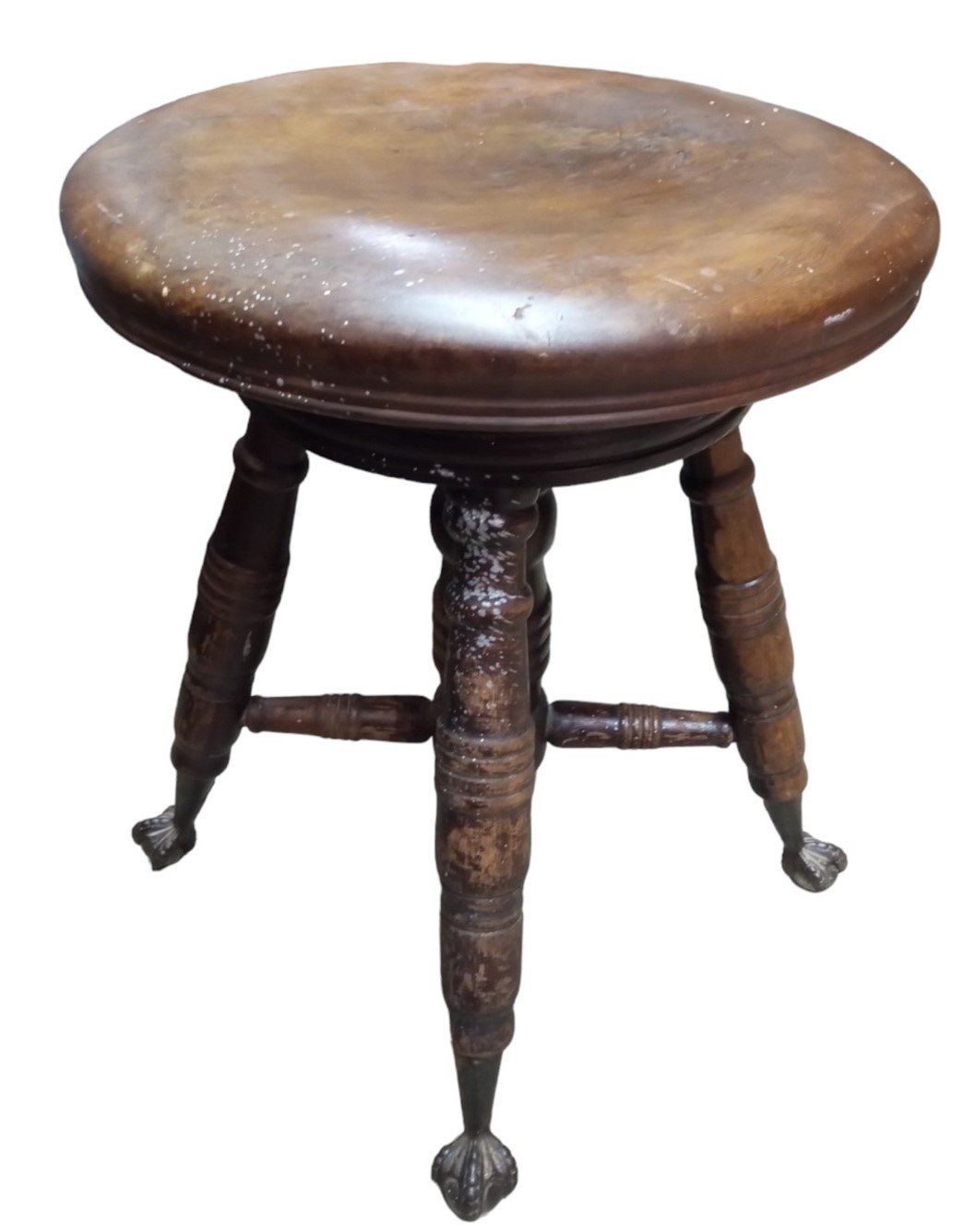 Piano Stool With Clawed Feet Vintage Collectible Ornate Wooden Furniture