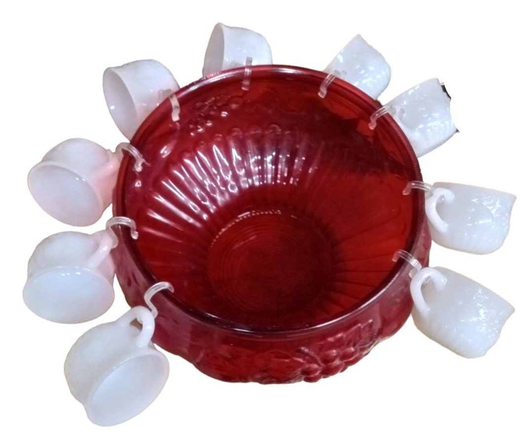 Jeannette Glass Punch Bowl & Cups Set Vintage Collectible Serveware Kitchenware