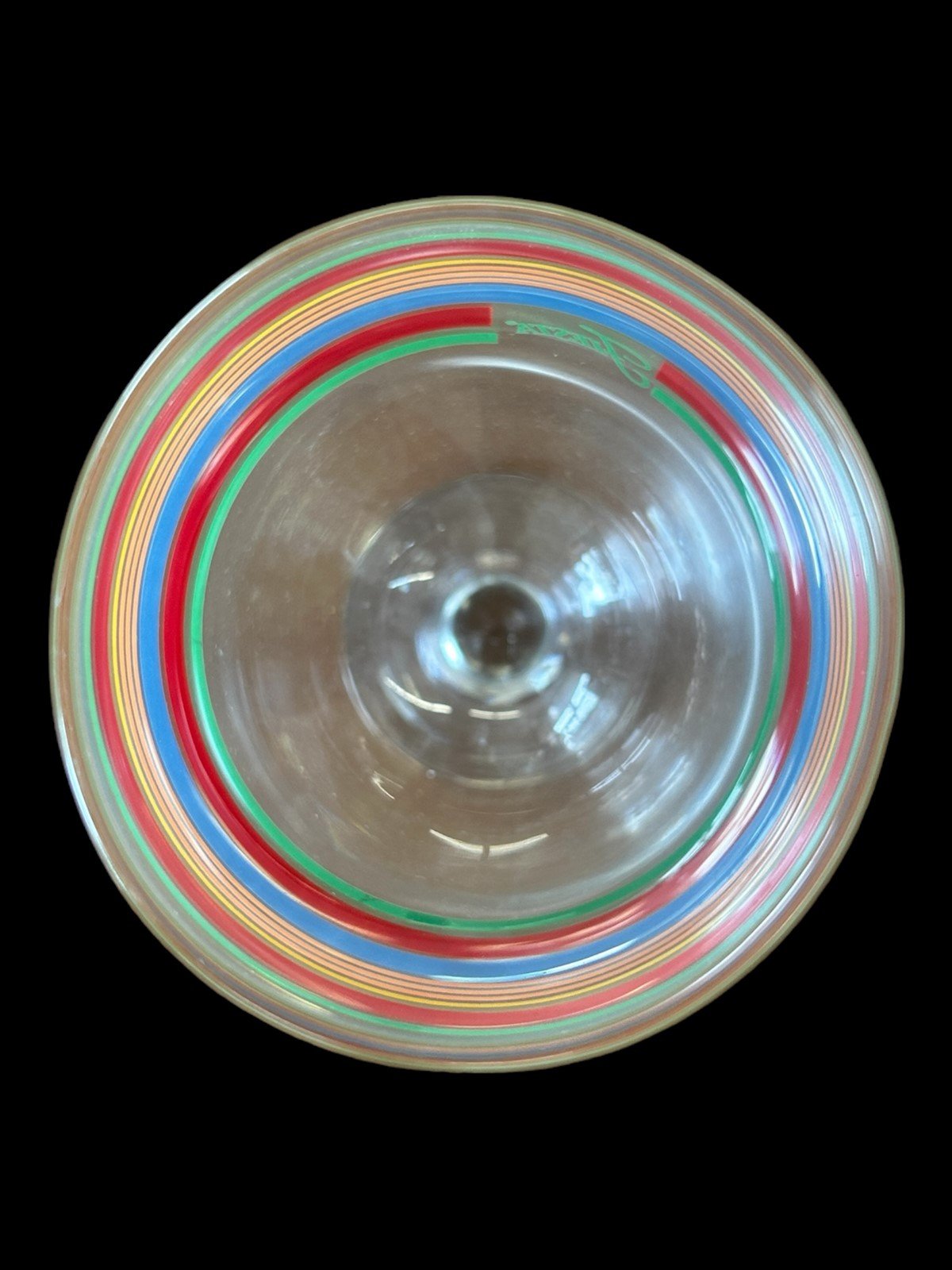 This is a vintage Iced Tea Glass from Fiesta Ware! This piece features stripes in classic Fiesta Colors: shamrock, scarlet, sunflower, tangerine, and turquoise! Fiesta does not produce this pattern anymore; it's a great find. As shown in the photos, this glass is in pristine condition! Add it to your collection today! The Iced Tea Glass holds about 16oz and measures approximately 7 inches tall and 3 inches in diameter.Take a look at the pictures for the best description. A photo is as good as a thousand words and is the best description of cosmetic condition. Use your ZOOM TOOL to best see this item! Please look closely at the photos for condition answers.