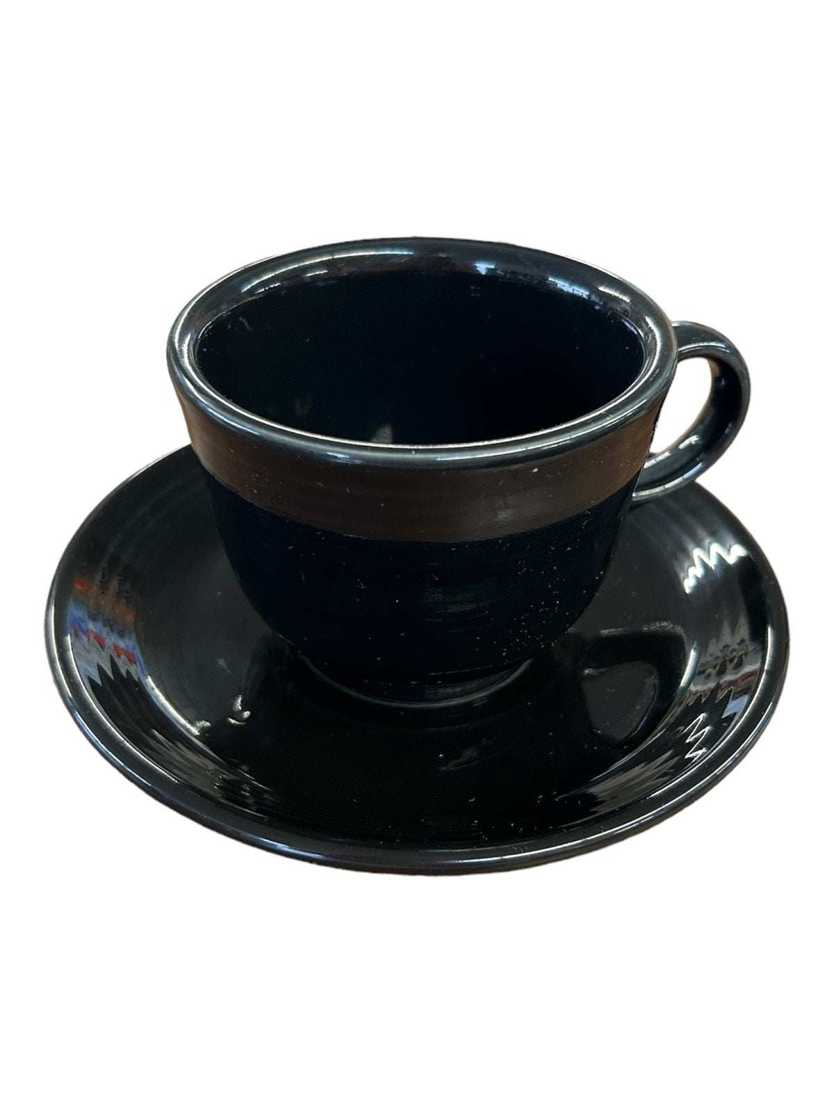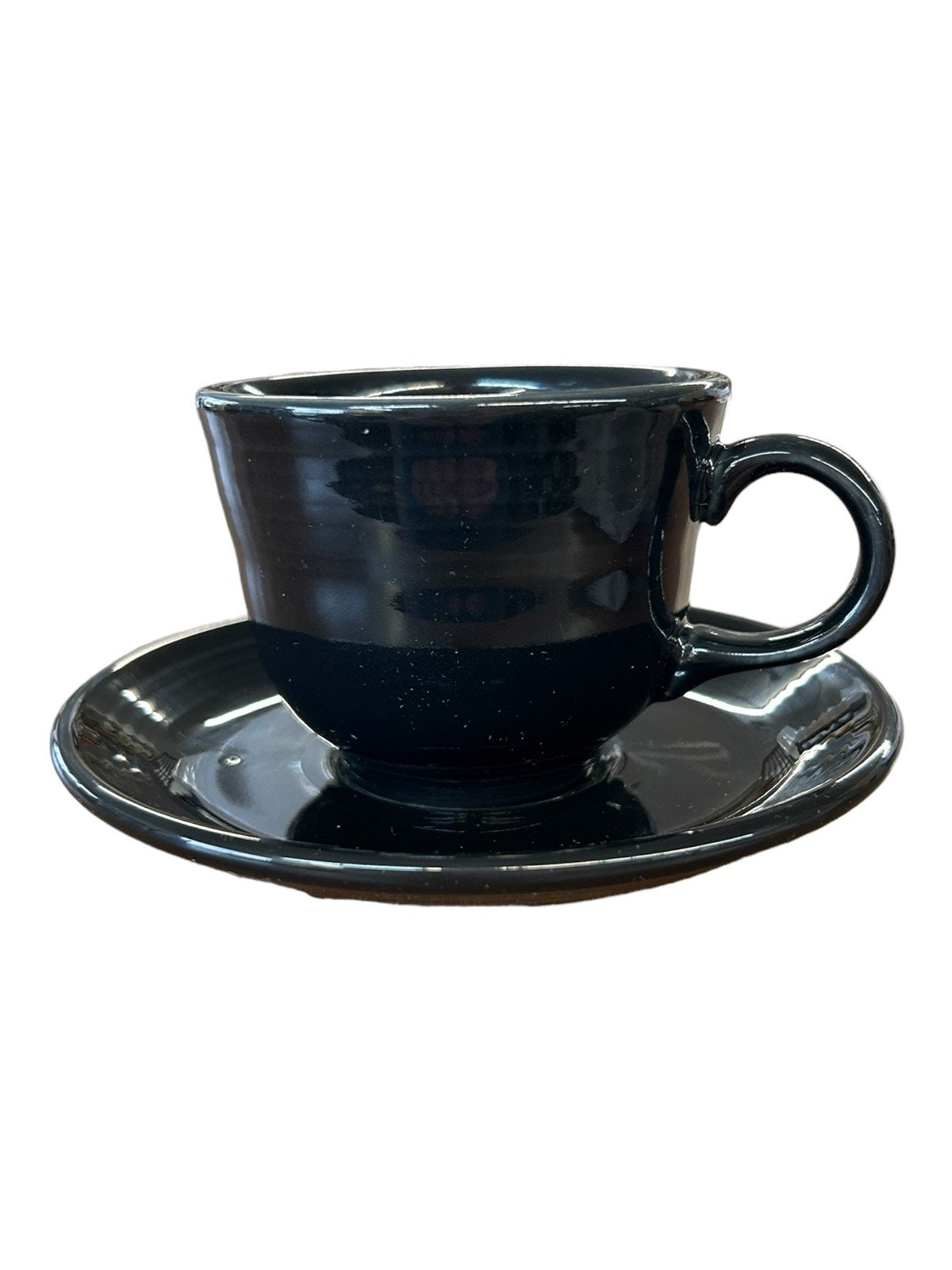 Fiesta - Black Teacup & Saucer Ceramic Homer Laughlin Tea Set Drinkware Kitchen