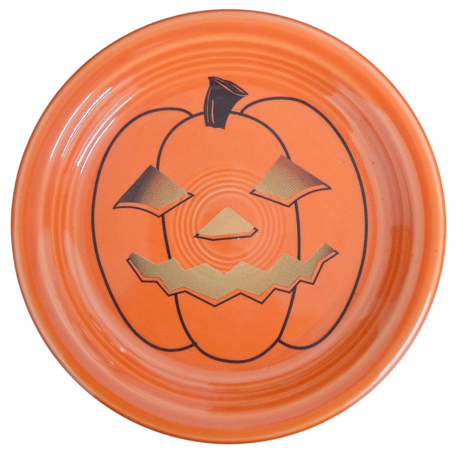 Fiesta - Poppy Orange With Jack 'O' Lantern Bistro Salad Plate Homer Laughlin HLC