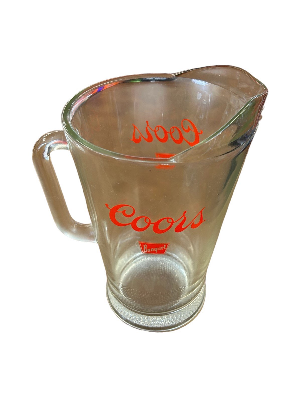 This Coors Pitcher with a bulgetop glass is the best set for every Coors fan! Circa 1970's, these pieces are in pristine shape and ready for your bar! Impress the guys with your collection and show off your love for Coors. The pitcher is approximately 9 x 7.5 x 5.5 inches. The glass is approximately 5.5 x 2.5 x 2.5.Take a look at the pictures for the best description. A photo is as good as a thousand words and is the best description of cosmetic condition. Use your ZOOM TOOL to best see this item! Please look closely at the photos for condition answers.