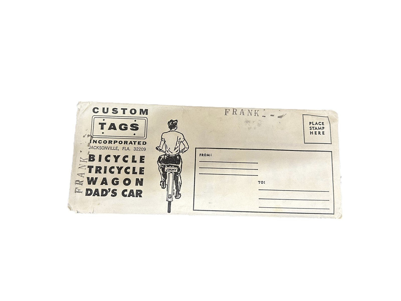 Custom Tags Incorporated 70s Ohio Bicycle Plates with Names Frank and Diana