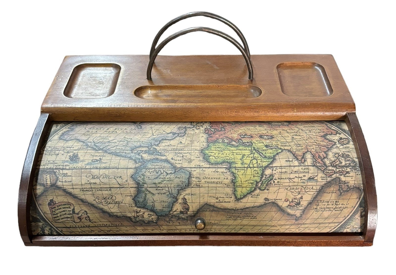 Valet Box Map Print Rolling Top Wooden Organizer Vintage Home Decor