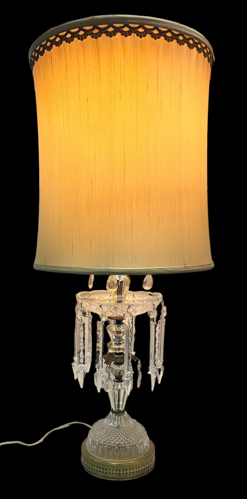 Crystal Lamp Antique MCM Dangling Pendants Vintage Lampshade Brass Base