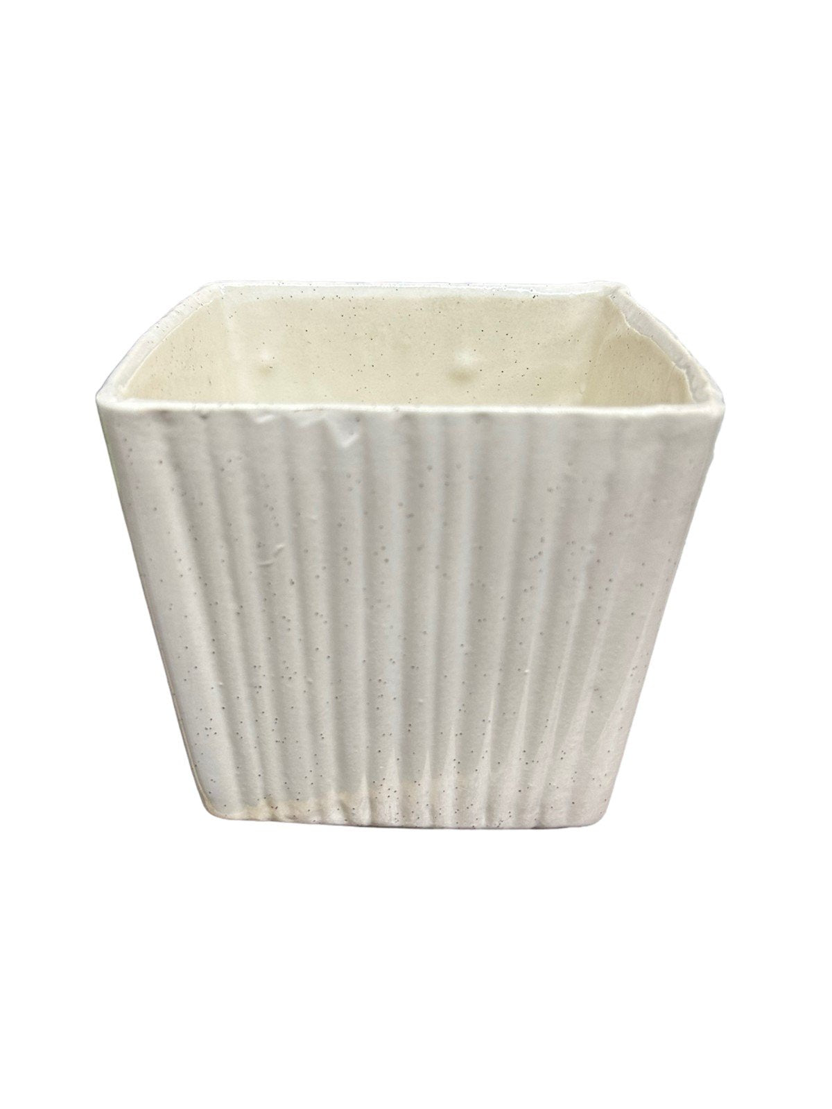 MCM White Ridged Vintage Speckled Handmade 018 U.S.A. Ceramic Flower Planter