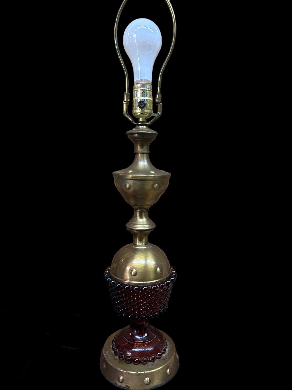 Fenton Vintage MCM Hobnail Glass Working Amber Colored Electric Gold Oil Lamp