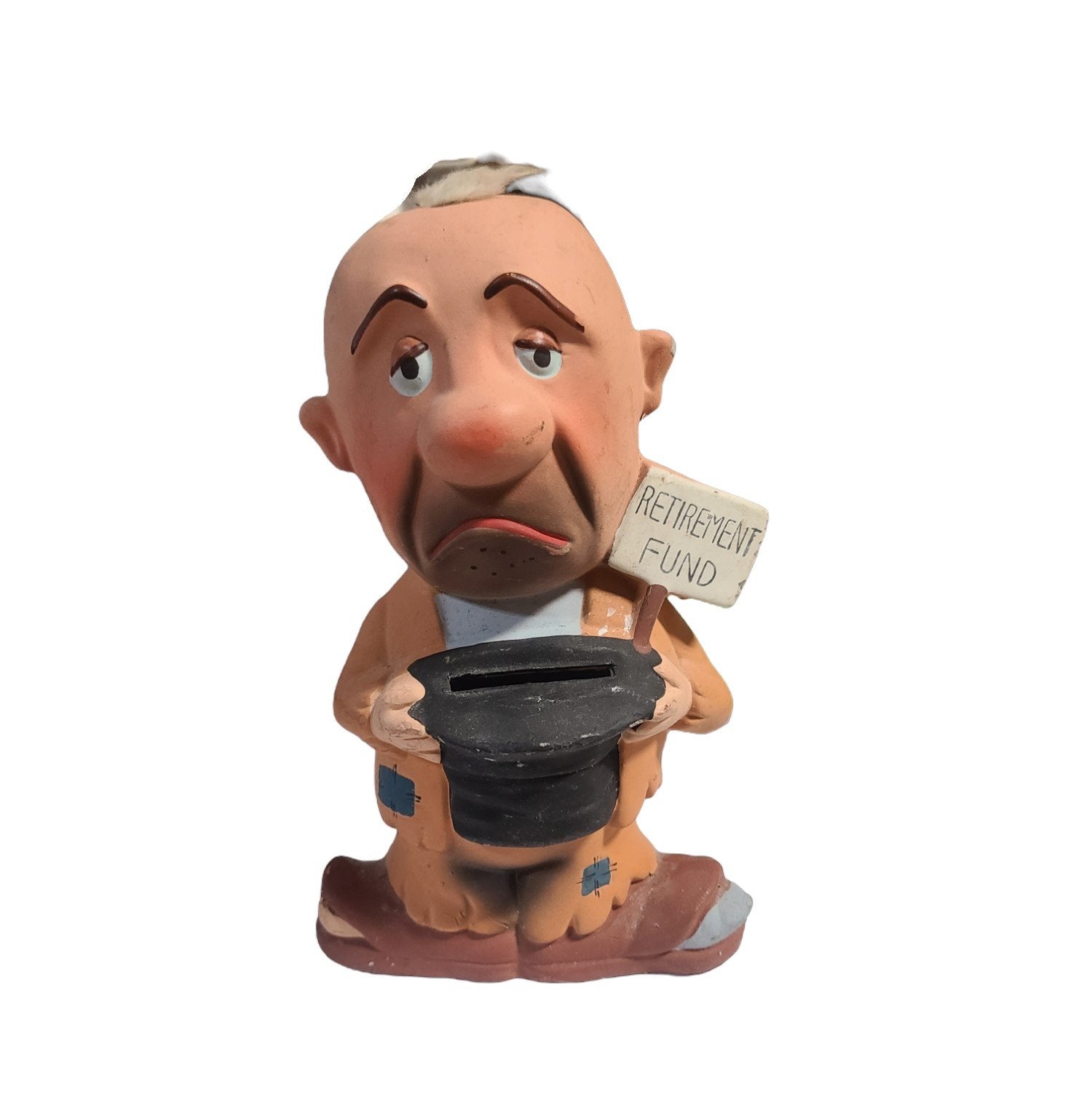 Vintage Retirement Fund Coin Bank Bald Hobo Beggar Rossini Japan 1960s