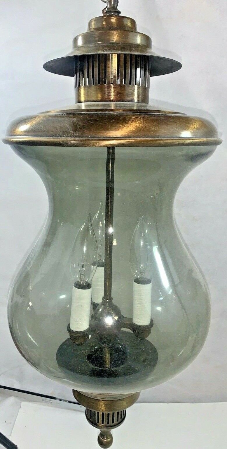 Vintage Mid Century MCM Glass and Brass Chandelier Light Lamp Fixture
