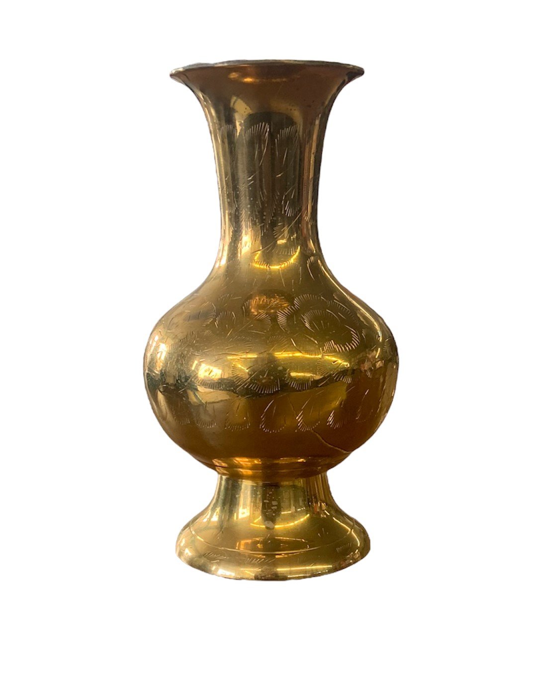 Vintage Brass Floral Etched Vase MCM Mid Century Modern 60s 70s India