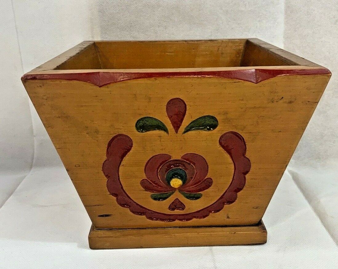 Vintage Hand carved MCM mid century modern wooden planter w/ Red and Green paint