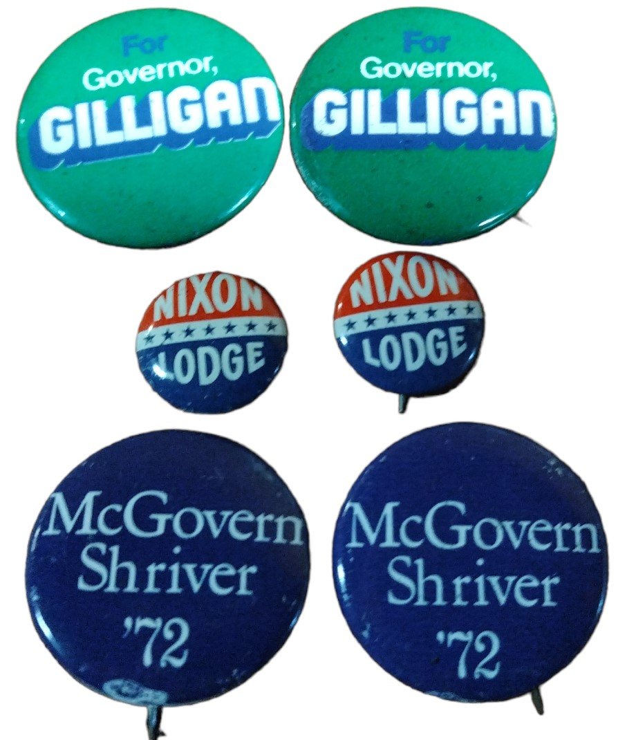 Vintage 1970s Richard Nixon & McGovern Shriver & John Gilligan Political Pins