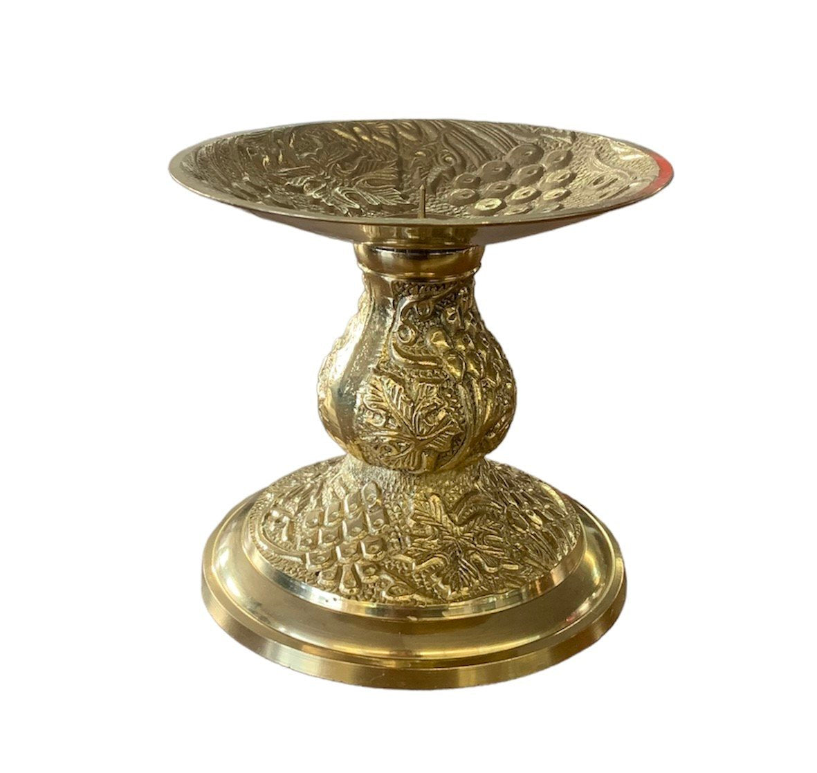 Vintage 1970s Floral Embossed Brass Candle Holder Made in India