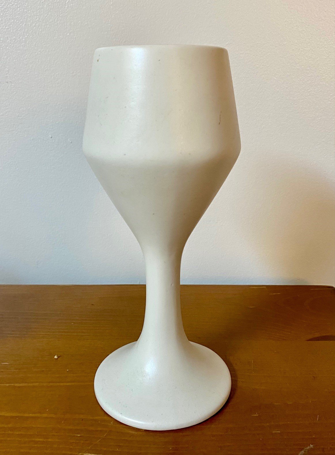 Vintage 9 1/4" MCM Matte White Haeger USA Pottery Chalice Goblet Pedestal Vase