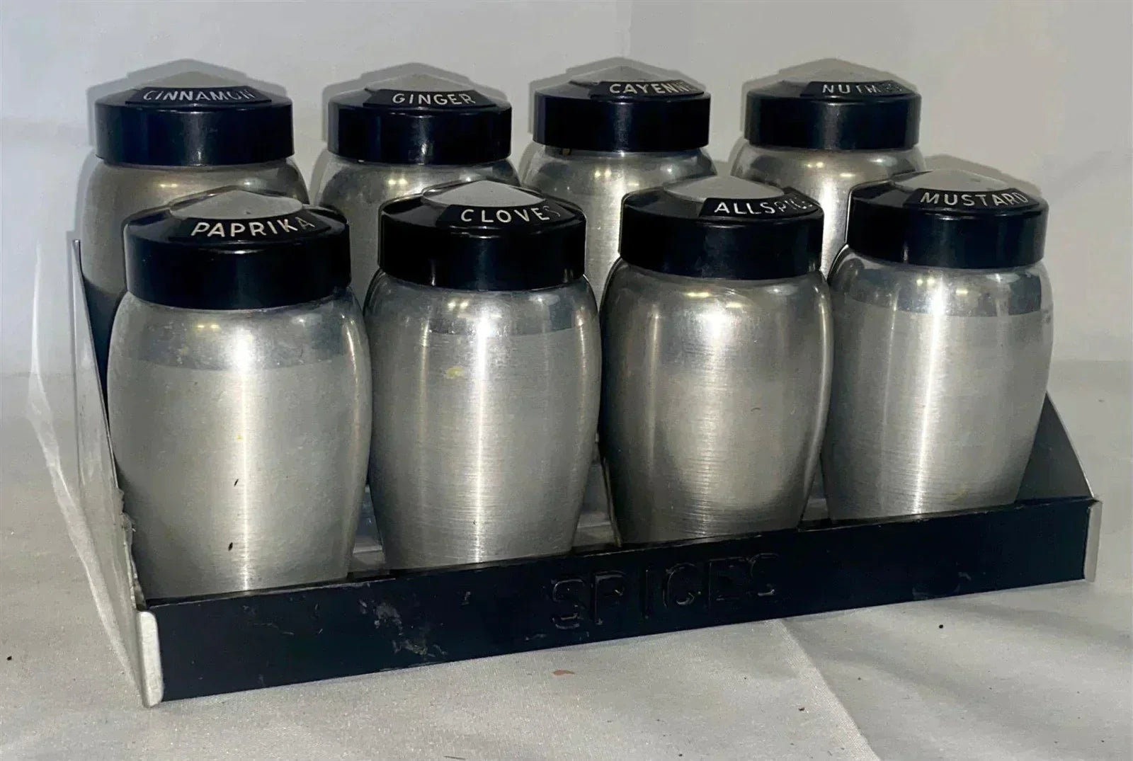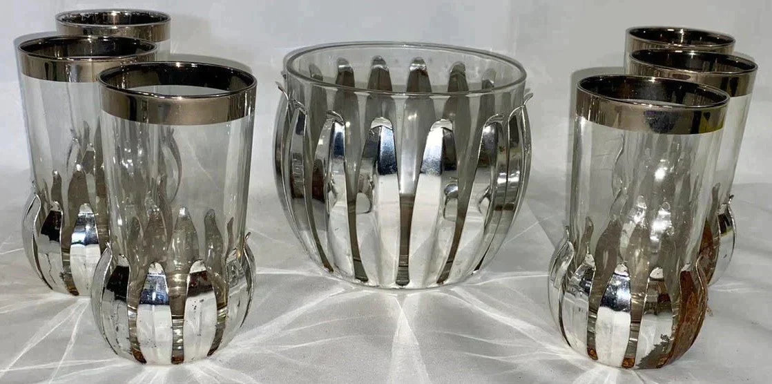 MCM Silver Lotus Set of 6 Glasses with Matching Ice Bucket with Cork Base