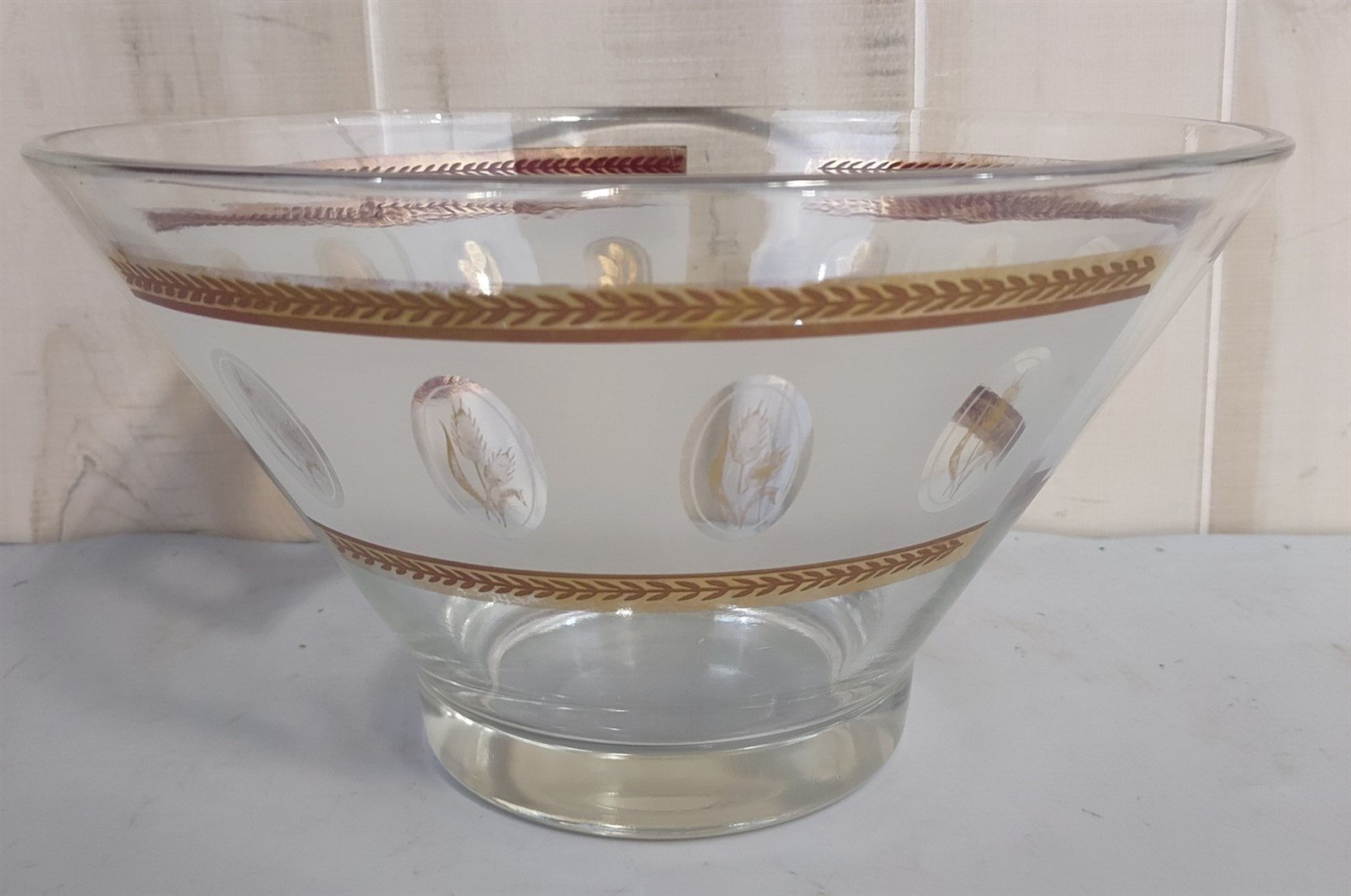 Vintage Mid Century Modern MCM Anchor Hocking Clear Glass Salad Chip Bowl Wheat
