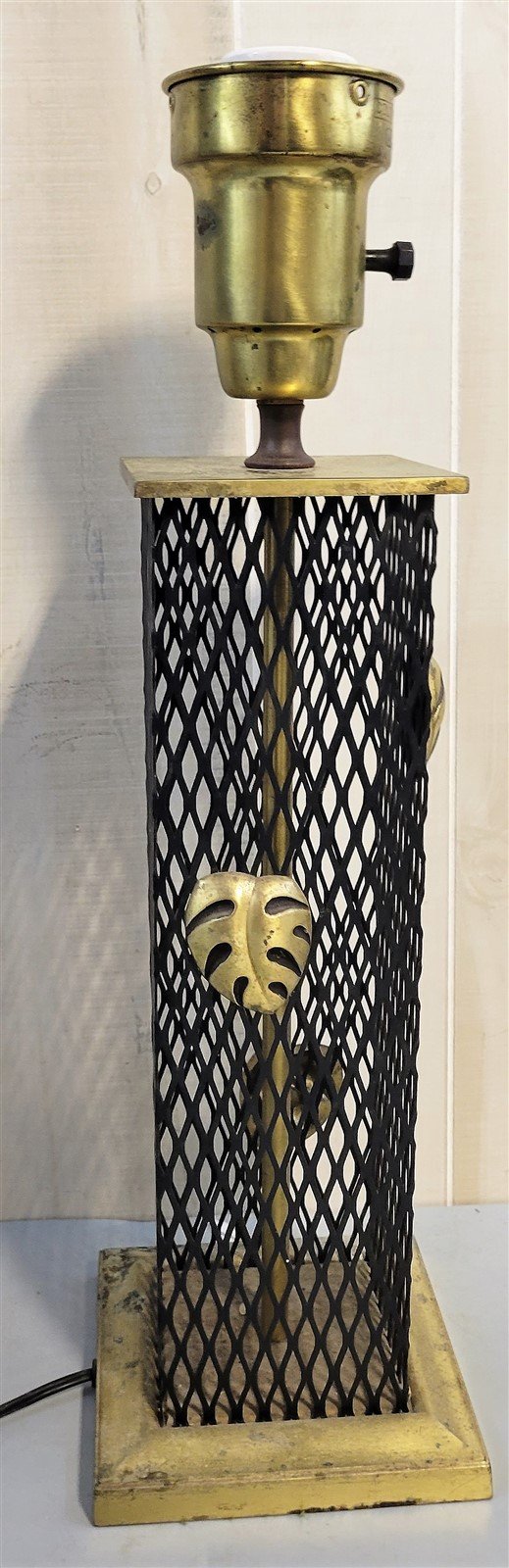 Vintage MCM Gold And Black Metal Mesh And Leaves Lamp By Colonial Premier