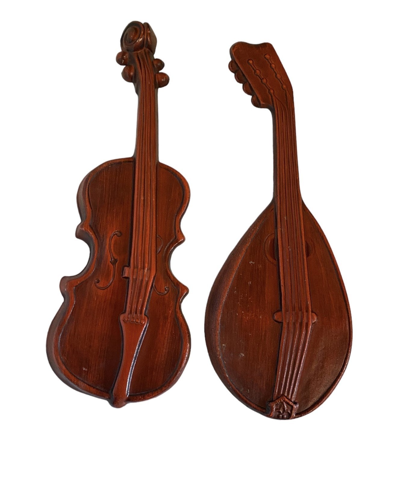 Royal Vintage Metal Cast Wall Decor, 1970s Violin and Mandolin, Orange