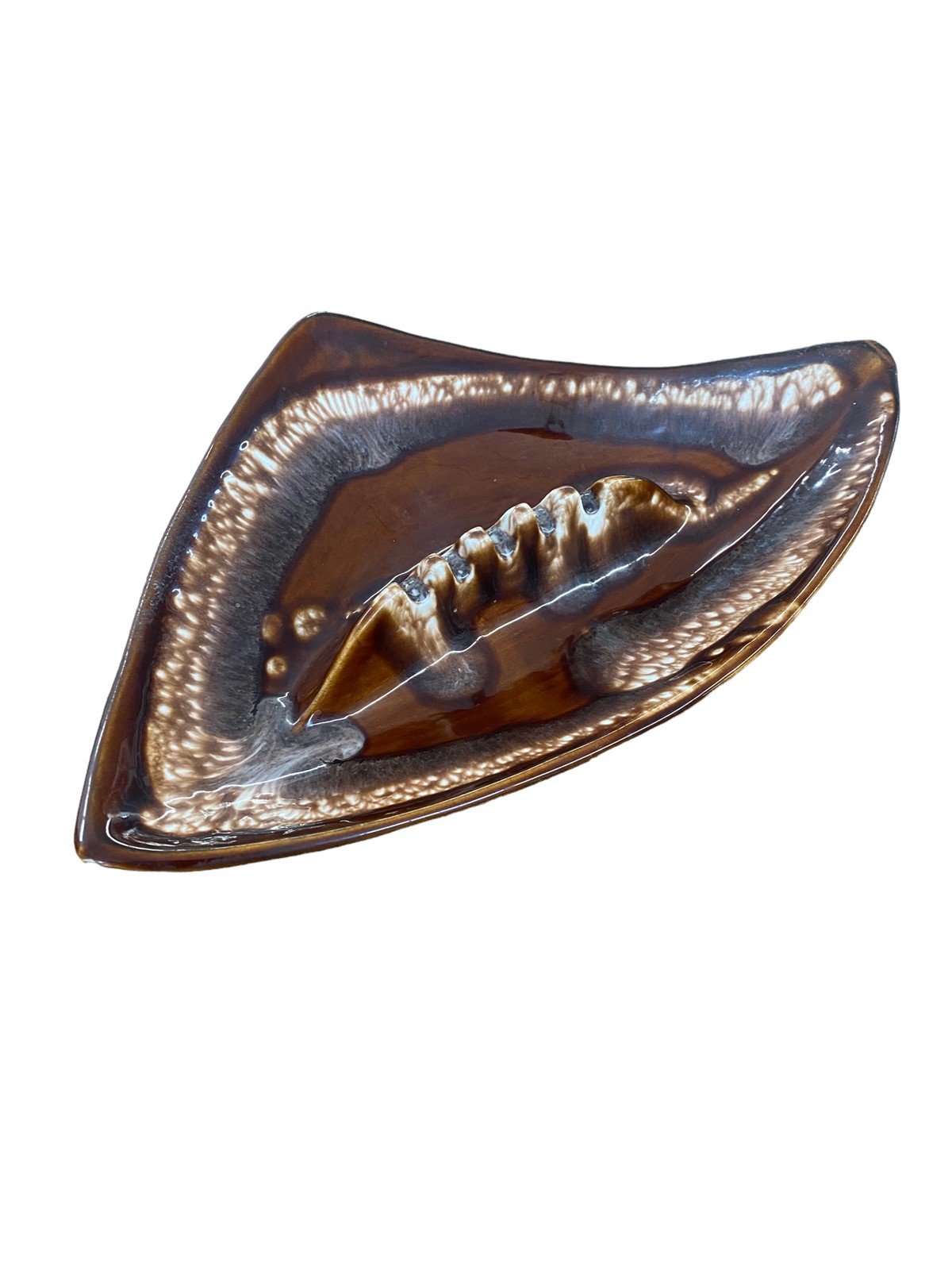 Ashtray 1960s Pottery California Original Ceramic Faux Wood Rim Blue Aqua Marble