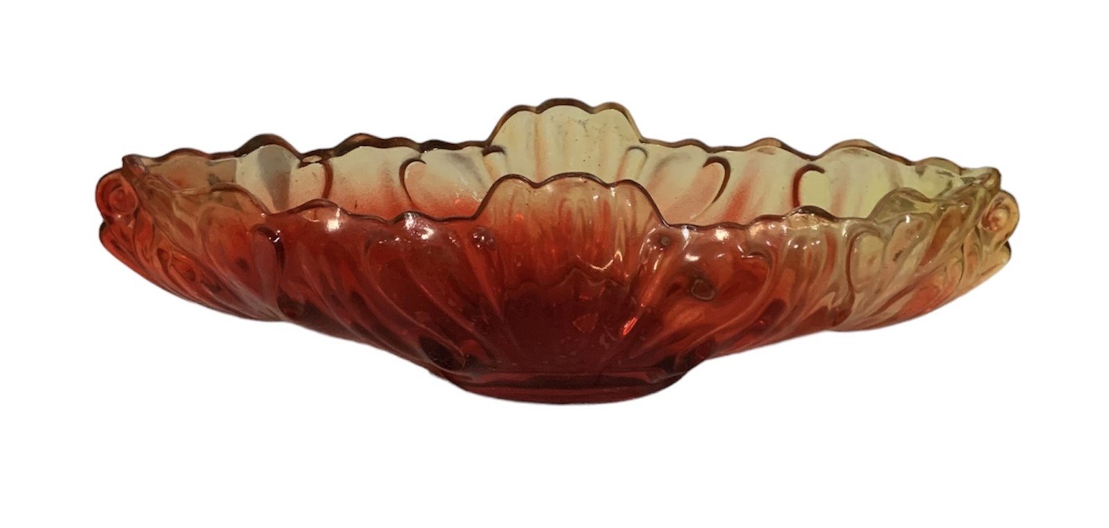 Glass Bowl Red Yellow Ombre Botanic Leaf Design Home Centerpiece Decor