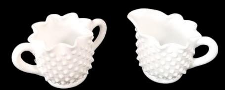 Antique Fenton Vintage Milk Glass Hobnail Sugar and Creamer MCM