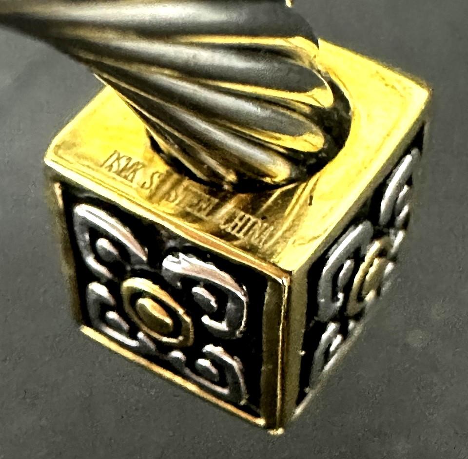 Vintage DSMK Stainless Steel Twisted Cuff Two Toned Block Bracelet
