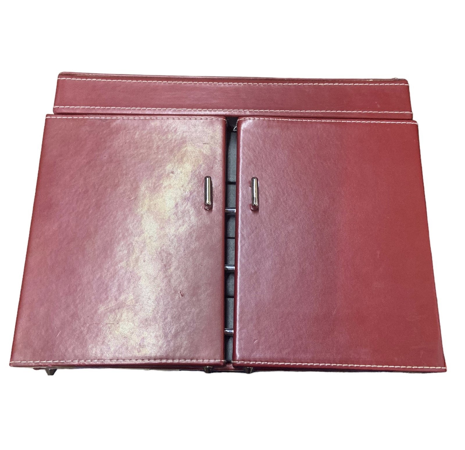 Vintage Maroon Jewelry Box 4 Compartment Organizer Mirrored Storage Display
