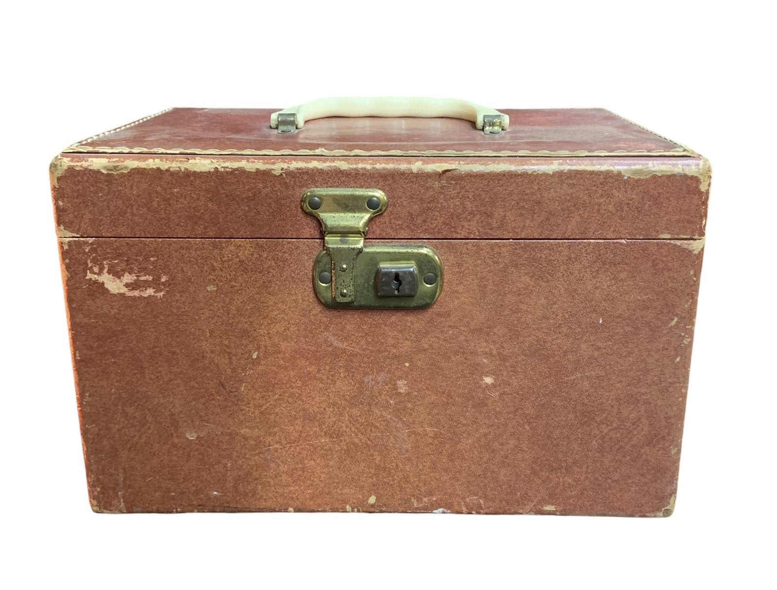 Travel Chest Vintage Red Faded Jewelry Box Mirrored Home Decor Suitcase Rustic
