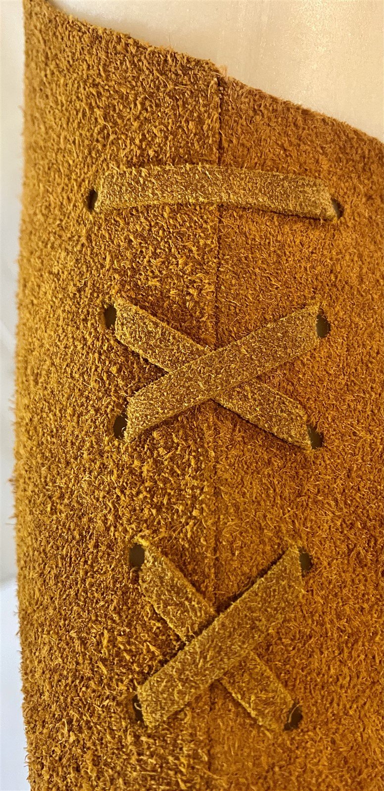 We are offering this vintage fringed suede vest (once worn by a rock band) just in time for the summer music festival season. (Think Coachella!) With its earthy brown soft leather fringe and tie front this vest gives a fun hippie vibe. The tag says mens but does not offer a size (appears to be a small to medium) and could be worn by anyone. Take a look at the pictures for the best description. A photo is as good as a thousand words and is the best description of cosmetic condition. Use your ZOOM TOOL to best see this item! Please look closely at the photos for condition answers. We describe items as best we can and as we see them. Some details may be missed but not intentionally. Condition of an item is our opinion. If you have any questions on the condition of these items let us know before you purchase! Thanks for looking!-